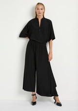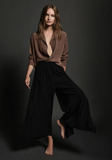 The Dubai Pant from Mela Purdie features an elasticated waistband and a flowing wide-leg design that creates the illusion of a skirt. This versatile pant is crafted from 100% technical polyester; Mache offers a full bodied, high fashion look combining style and comfort in a user-friendly fabrication that is machine washable and ideal for travel.
