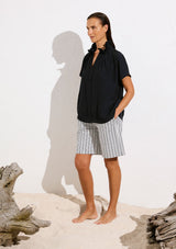 Crafted from Mela Purdie's Mache, featuring a relaxed fluidity & smooth lustre surface. The Fleur Shell features front neck detailed gathering and frilled collar edge.