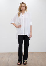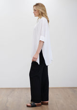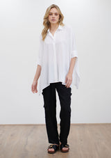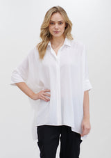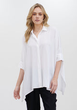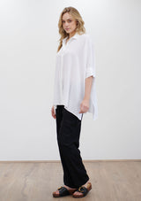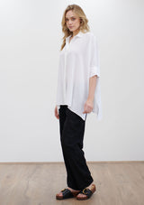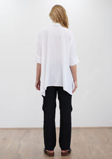 The Panama Shirt from Mela Purdie features a collar with button down front, 3/4 length sleeves and and a slighter longer hem length at the sides with side slit openings. Crafted from 100% technical polyester, Mache offers a full bodied, high fashion look that combines style and comfort in a user-friendly fabrication, that is machine washable and ideal for travel.