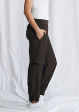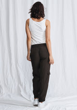 The Platoon Pant from Mela Purdie features an elastic waistband, side pockets, soft balloon shape and added pockets on lower half of the leg. Crafted from Mela’s non-stretch fabrication, Machè.