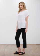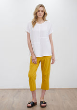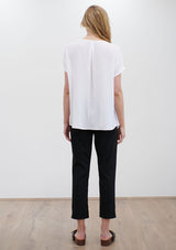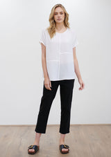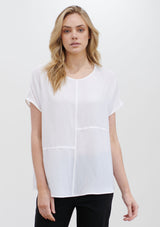 The Quarter Panel Shell from Mela Purdie features round neckline, panelling detail and a relaxed shape silhouette with non set in cap sleeves. Crafted from 100% technical polyester, Mache offers a full bodied, high fashion look that combines style and comfort in a user-friendly fabrication, that is machine washable and ideal for travel.
