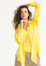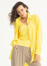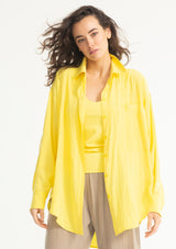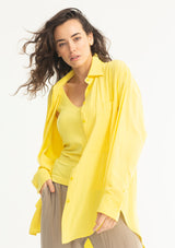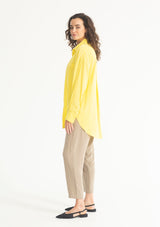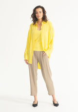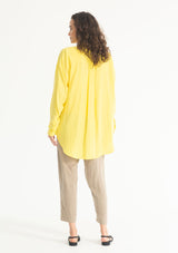 The Relaxed Pocket Shirt by Mela Purdie features a classic shirt collar with button down front opening, single pocket detail on front, full-length sleeves with cuffs and a scooped hemline. The oversized fit makes this the perfect overshirt to wear over slim pants or open for fluidity. This relaxed shirt is crafted from 100% technical polyester; Mache offers a full bodied, high fashion look that combines style and comfort in a user-friendly fabrication, that is machine washable and ideal for travel.