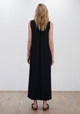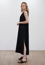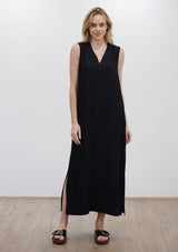 The Scallop Maxi Dress from Mela Purdie features a V-neck with scalloped detail and a loose-fitting silhouette with featured side splits. Crafted from 100% technical polyester, Mache offers a full bodied, high fashion look that combines style and comfort in a user-friendly fabrication, that is machine washable and ideal for travel.