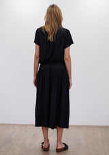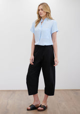 The Short Sleeve Pocket T by Mela Purdie features a tab neckline, short sleeves and a single button front with pocket detail. Cut for a classic relaxed fit and crafted from Mela’s non-stretch fabrication, Mache. Mache offers a full bodied, high fashion look that combines style and comfort in a user-friendly fabrication, that is machine washable and ideal for travel.