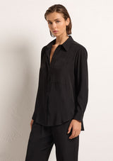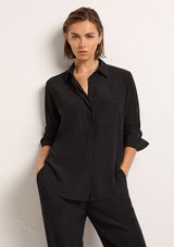 The Mela Purdie Single Pocket Shirt features a single front patch pocket detail, button front with collar and full-length sleeve with cuff. Cut for a classic relaxed fit and crafted from Mache.