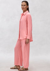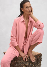 The Soft Shirt from Mela Purdie features a classic shirt collar, concealed front button closure, full length sleeves with cuffs and a back yoke with pleat detailing. Crafted from Mela’s non-stretch fabric, Mache, it offers a relaxed fluidity and smooth lustre surface, blending style and comfort in a user-friendly, machine washable fabric ideal for travel.