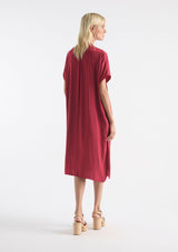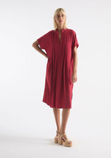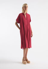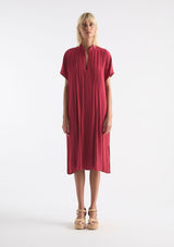The Trio Pleat Wedge from Mela Purdie features a crisp stand collar with pleat folds through the body, relaxed drop shoulder with short sleeves, side pockets and a mid-length box shape silhouette with side splits at hem. Crafted from Mela’s technical polyester Mache, it offers a fuller bodied, high fashion look that combines style and comfort in a user-friendly fabrication that is machine washable and ideal for travel.