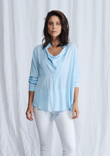 The Valance Shell from Mela Purdie features a high collar and a soft cowl neck front, and long non set-in sleeves. This blouse is relaxed through the body, and the hemline is rounded with side splits. Crafted from Mela’s non-stretch fabrication, Machè.