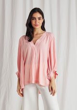 The Verandah T is crafted from Mela's non-stretch fabrication, Machè. This designer top by Mela Purdie features a v-neckline, ¾ peasant sleeve, relaxed silhouette in the body and placket detailing on the back.