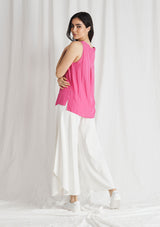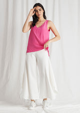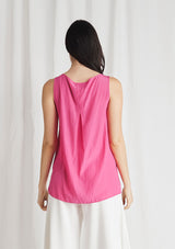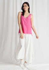 The Mela Purdie Audrey Tank features a soft V Neckline, "Closed in' back and slightly longer hemline at the back. This tank has been fitted with doubled fabric front making it non-transparent in all colours. Crafted from Macro-Mousseline; a fabric that drapes like a silk but can be machine washed. This is a travel essential and everyday dressing must have.