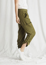 The Mela Purdie Soft Cargo features a relaxed fit pant with cargo style pockets, comfort fit elastic waist and tab rolled legs giving you options for full length or cropped. Crafted from the ideal travel fabrication; Macro-Mousseline.