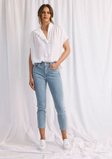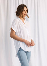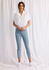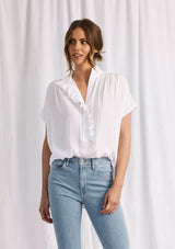 The Verona Tank been crafted from Mela Purdie’s non-stretch fabrication, Macro-Mousseline. The Verona Tank features a cap sleeve, mandarin collar with ruffle detailing and a relaxed fit which flows down from the bust.