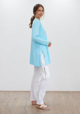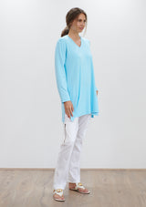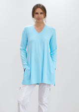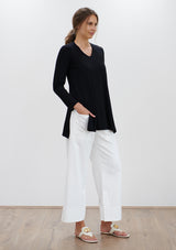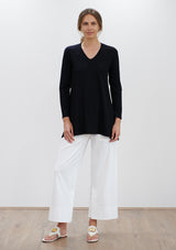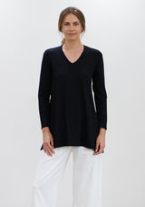 The Sweat Tunic from Mela Purdie features a V neckline, long sleeves and side splits. Designed to be worn as a dress or over leggings. This versatile top is crafted from the renowned matte viscose jersey, offering optimal comfort and stretch.