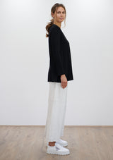 The Cone Top by Mela Purdie features a U shape neckline with long sleeves, front centre seam detail and relaxed silhouette. This versatile top is crafted from the renowned matte viscose jersey, offering optimal comfort and stretch.