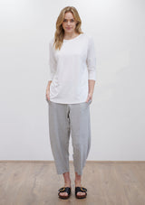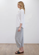 The Crest Top by Mela Purdie features a relaxed silhouette with a crew neckline, drop shoulder, 3/4 sleeves and a slightly rounded hemline that falls below the hips. This versatile top is crafted from the renowned matte viscose jersey, offering optimal comfort and stretch.