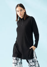 The Half Zip Maxi Sweater from Mela Purdie features a relaxed body with a half zip funnel neckline, full length sleeves and side splits at the hem to encourage movement. This longer length top is crafted from the renowned matte viscose jersey, offering optimal comfort and stretch.