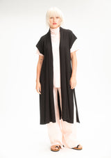 The Maxi Vest from Mela Purdie features a drape front, cap sleeves, side splits at hem and a relaxed silhouette. This vest is designed to wear open and is crafted from the renowned matte viscose jersey, offering optimal comfort and stretch.