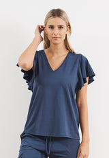 The Mela Purdie Scroll T offers a unique and playful addition to your summer wardrobe. This shirt features elegant, softly flared short sleeves which create a flattering shape and feminine design. With short sleeves, a V neckline the Scroll T is cut for a slightly slim fit. Crafted from Matte Jersey, this ultra-soft shirt is both comfortable and breathable for summer and is an essential for everyday wear. Fully machine washable and available in colours black and white this shirt falls to the hips.