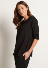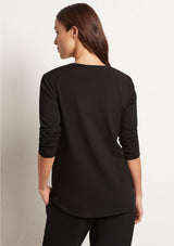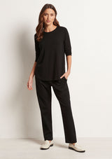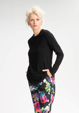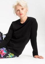 The Studio Top from Mela Purdie features a crew neckline, full length sleeves and a slight curved hemline. This top is crafted from the renowned matte viscose jersey, offering optimal comfort and stretch.
