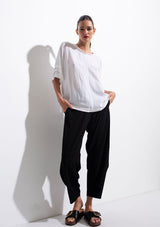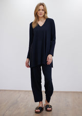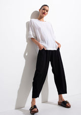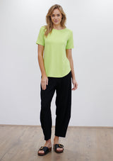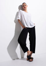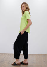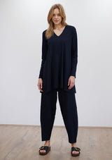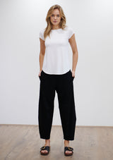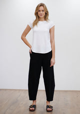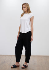 The Tuscan Track from Mela Purdie features an elasticised waistband designed to sit just above the hips, a puffer wide cropped leg that tapers in, pockets and panel detailing. This versatile pant is one of our best -selling styles crafted from the renowned matte viscose jersey, offering optimal comfort and stretch.
