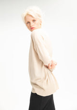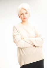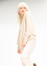 The Cabana Sweater by Mela Purdie features features a generous crew neckline and modern, exaggerated sleeves with cuff hem detail. Knitted from sumptuously soft, featherweight Merino Wool and designed for a relaxed fit, this sweater is perfect for layering.