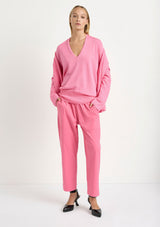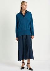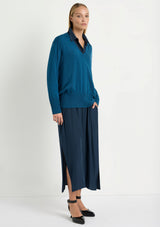 The Walker Sweater by Mela Purdie features an elegant v-neckline, full-length sleeves and delicate ribbed accents on the cuffs and hemline. Knitted from a sumptuously soft, featherweight Merino Wool, this sweater is designed for a relaxed fit, making it the ideal choice for layering.