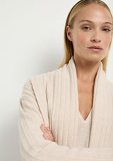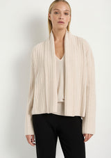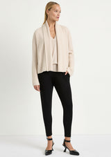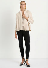Mela Purdie uses Australian Merino Wool that is spun in Italy. A high twist crepe yarn is used to reduce pilling and increase durability. The travel throws, wraps and sweaters are perfect for travel as they are warm yet breathable.