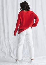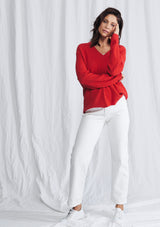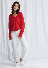 The Ottoman Sweater from Mela Purdie features a relaxed fit design with v-neckline and long sleeves. Designed to be slightly oversized, this sweater is crafted from a Merino Wood blend fabrication.