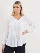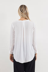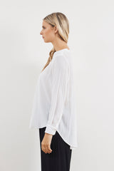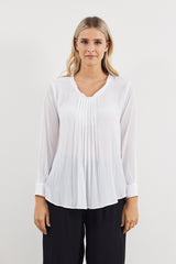 Achieve effortless style in the Mela Purdie Micro Pleat Blouse. This carefree style features a relaxed body, long sleeves with cuffs, a scooped hemline that is longer at the back and pleat detailing at the shirtfront. Crafted from best selling mousseline, this shirt is ideal for the travelling woman.