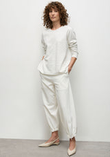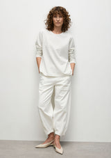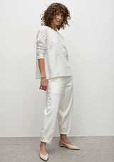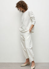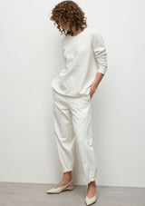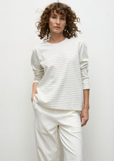 Crafted in Mela Purdie's firm and comfortable Micro-stripe Ponte. The Trunk Sweater features a timeless boat shaped neckline and built in comfort