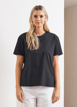 The Mela Purdie Bermuda T is crafted from lightweight flexible stretch Microprene. This cotton/elastane blend is ultra-comfortable and durable and combines style with functionality. The Bermuda T features a round neckline, short sleeves, relaxed body and polished hemline.