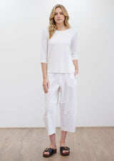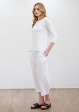 The Crop Frame Pant by Mela Purdie features an elasticised waistband designed to sit just above the hips, side pockets and panel detailing in a loose fit through the thigh, tapering off at the ankle. Crafted from best-selling Microprene; a lightweight cotton stretch fabrication that is machine washable.