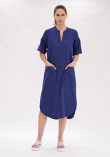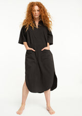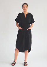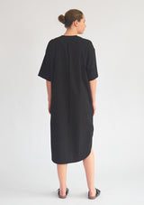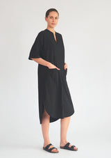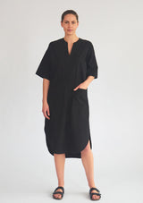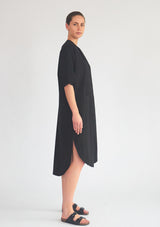 The Frame Dress from Mela Purdie features a firm round neckline with subtle vented opening, curved hemline and exaggerated T Shirt sleeve. There are Patch Pockets on the front for added detail and functionality. Designed to be worn as a dress or over leggings. This Dress is crafted from Microprene; a lightweight stretch fabrication that is machine washable and ideal for travel.