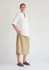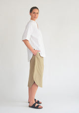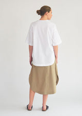 The Mela Purdie Frame T features a firmly constructed round neckline with subtle front neck slice, left chest pocket detailing, a short sleeve ideally worn turned up and generously curved hem shape designed for elongating the figure. This Top is crafted from Microprene; a lightweight stretch fabrication that is machine washable and ideal for travel.