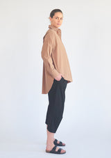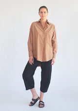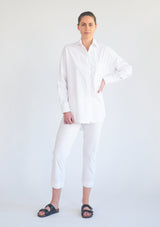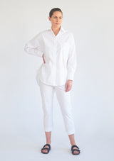 The Mela Purdie Hero Shirt features a dropped shoulder and exaggerated hemline. Whilst maintaining the classic shirt essentials of a soft button closer at the front, firm collar and shirt cuff detailing. Finished with one chest pocket. Crafted from Microprene; a lightweight stretch fabrication that is machine washable.
