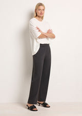 The Long Fatigue Pant from Mela Purdie features an elasticised waistband, side pockets at hips and a straight, relaxed fit. Crafted from best-selling Microprene; a lightweight cotton stretch fabrication that is machine washable.