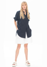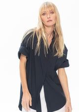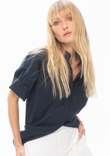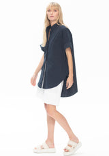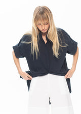 The Relaxed Cuff Shirt from Mela Purdie features a crisp nehru style stand collar, single patch chest pocket and a cuffed, short sleeve to encourage a rolled-up look with ideal coverage. A relaxed fit through the body with generously deep armholes, dropped shoulders and an exaggerated hemline. Crafted from Mela’s best-selling Microprene; a lightweight French stretch cotton blend fabrication that is machine washable.