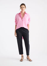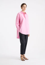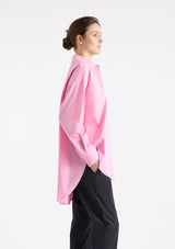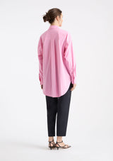 The Relaxed Pocket Shirt by Mela Purdie features a classic shirt collar with button down front opening, single pocket detail on front, full-length sleeves with cuffs and a scooped hemline. The oversized fit makes this the perfect overshirt to wear over slim pants. This versatile shirt is crafted from Microprene; a lightweight stretch fabrication that is machine washable.