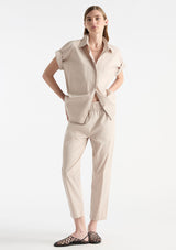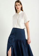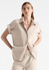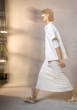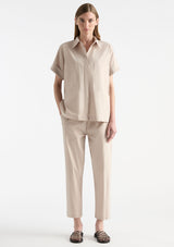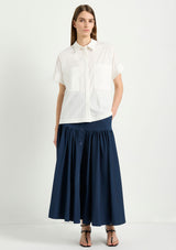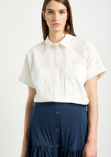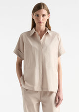 The Shell Shirt from Mela Purdie features a shirt collar, concealed front placket with button closure, front cargo pockets, mid length sleeves which can be rolled up, pleat detail at the back and a mid-length hemline. Crafted from Mela’s best-selling Microprene; a crisp, lightweight cotton stretch fabrication in a polished finish that is machine washable.