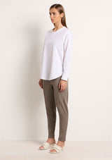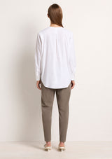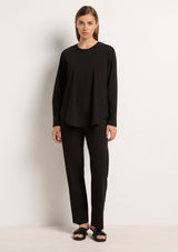 The Shirt Tee from Mela Purdie features a round band neckline, full length sleeves with buttoned shirt cuffs, pleat at back of neck and a high/low curved hemline. This relaxed shirt is crafted from Microprene; a lightweight stretch fabrication that is machine washable.