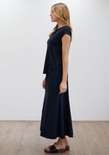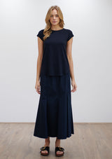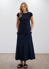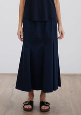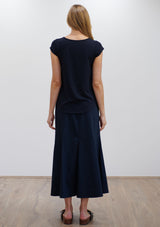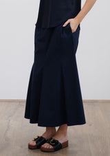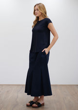 The Stride Skirt by Mela Purdie features a flat front with seamed panelling through the fluted ankle length skirt. Crafted from best-selling Microprene; a lightweight cotton stretch fabrication that is machine washable.