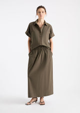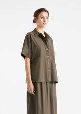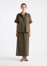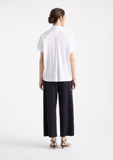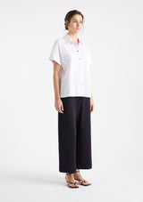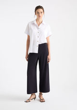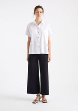 The Stud Shell Shirt from Mela Purdie features a classic shirt collar, concealed front placket with stud closure, front patch pockets, mid length sleeves which can be rolled up, back yoke with pleat detailing and mid length hemline. Crafted from Mela’s best-selling Microprene; a crisp, lightweight cotton stretch fabrication in a polished finish that is machine washable.