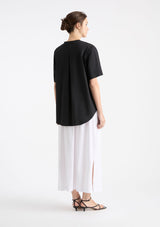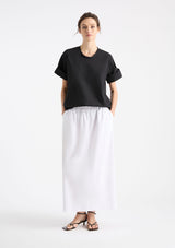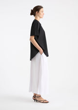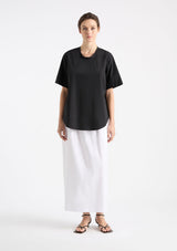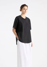 The Tee Top from Mela Purdie features a round neckline, a relaxed fit through the body, curved hemline and generously banded elbow length sleeves to encourage a roll up look. Crafted from Mela’s best-selling Microprene; a crisp, lightweight cotton stretch fabrication in a polished finish that is machine washable.