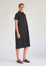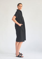 The Mela Purdie Tour Dress features a crisp collar, front button packeting and self-cap sleeves with the ideal amount of coverage. Falling just below the knee with side splits in the hem and pleat detailing in the nape of the neck. This Dress is crafted from Microprene; a lightweight stretch fabrication that is machine washable and ideal for travel.