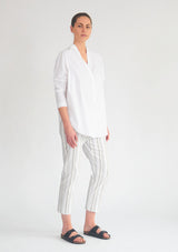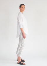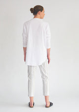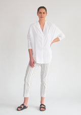 The Mela Purdie Track Overshirt is the perfect oversized piece to wear over tracks or a tapered pant. Featuring a firm curved V neckline with button fastening, slim fitting sleeves, and a wide drop shoulder to balance the exaggerated curved hemline. This Shirt is crafted from Microprene; a lightweight stretch fabrication that is machine washable and ideal for travel.