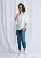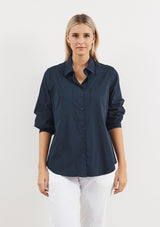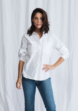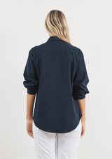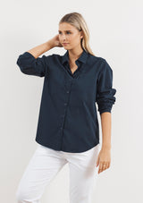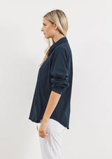 The Mela Purdie Microprene Tuscan Shirt is crafted from lightweight stretch fabrication, Microprene. This shirt features a classic pointed collar, front breast pockets, button down front and full-length sleeves.