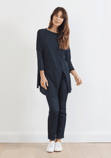 The Multi Split Tunic will become the hero piece in your wardrobe this upcoming season. This simply elegant top features ¾ sleeves, round neckline, and a multi split angled hemline that falls just below the hips. Be confident knowing this top is crafted from Mela Purdie's well renowned Matte Jersey; offering comfort, durability and stretch.