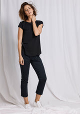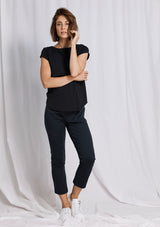 The Mela Purdie Ankle Pant features in a Neo Ponte fabrication. It’s has a tailored in a 7/8th finish, with a mid-rise waistband that functions as a pull-on design.