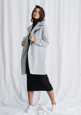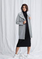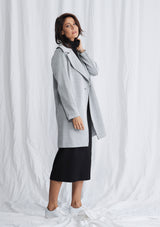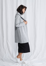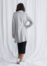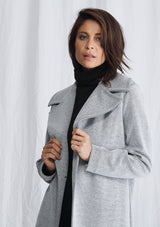 The Chapel Coat from Mela Purdie is crafted from a stretch fabrication, Oxford Knit. This tailored Coat features double breasted lapel, long sleeve with cuff and one button at the front.