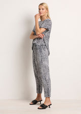 The Panther Print Air Weave Soft Capri from Mela Purdie from Mela Purdie features an elasticated waist, pockets at hips and a slightly cropped length. Cut in the beautiful European, crinkle resistant Air Weave Panther Print, this pant is cut for tapered fit through the leg.